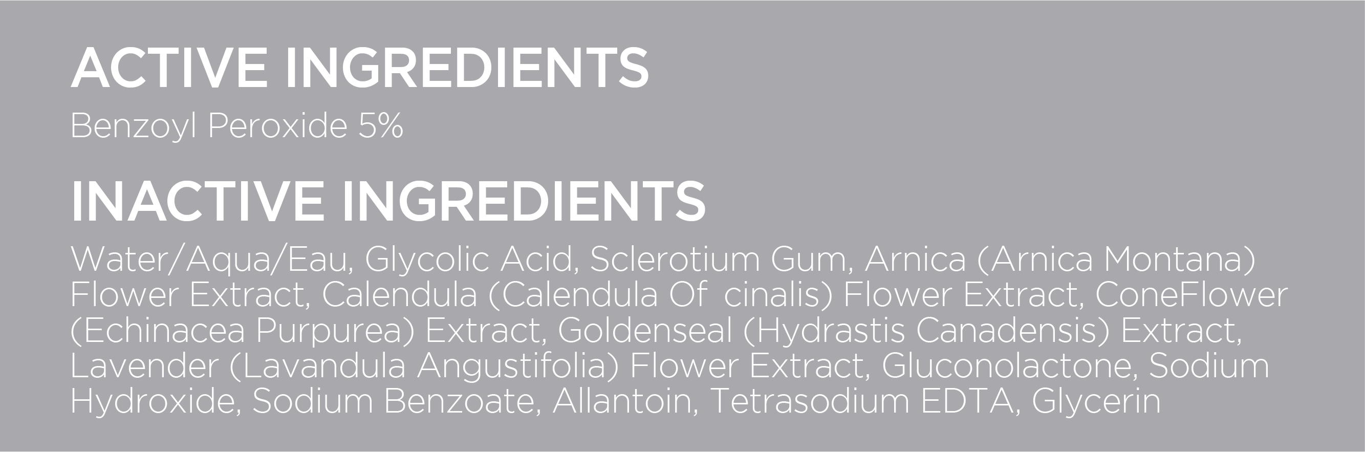 This botanically infused treatment product, containing micronized Benzoyl Peroxide and Glycolic Acid, synergistically works as a highly effective acne-fighting, blemish removing serum, quickly clearing the pores of bacteria and cellular debris within 24 hours. In addition, this product dramatically reduces the sebum levels within the skin resulting in a clear, blemish-free complexion.