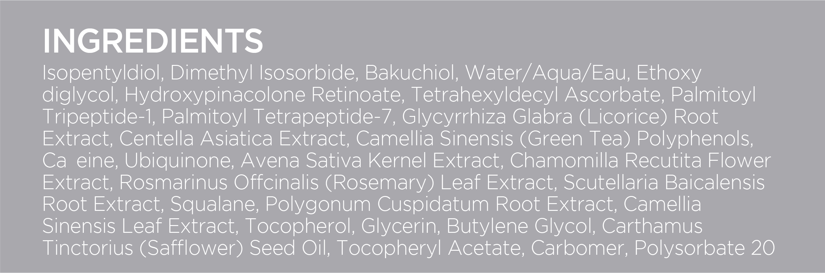 A revolutionary triple-action anti-aging serum that contains a retinoid, bakuchiol, peptides, and powerful antioxidants to support collagen-depleted skin to target fine lines, deep wrinkles, enlarged pores, dullness of the skin, loss of firmness, and brighten the overall complexion.