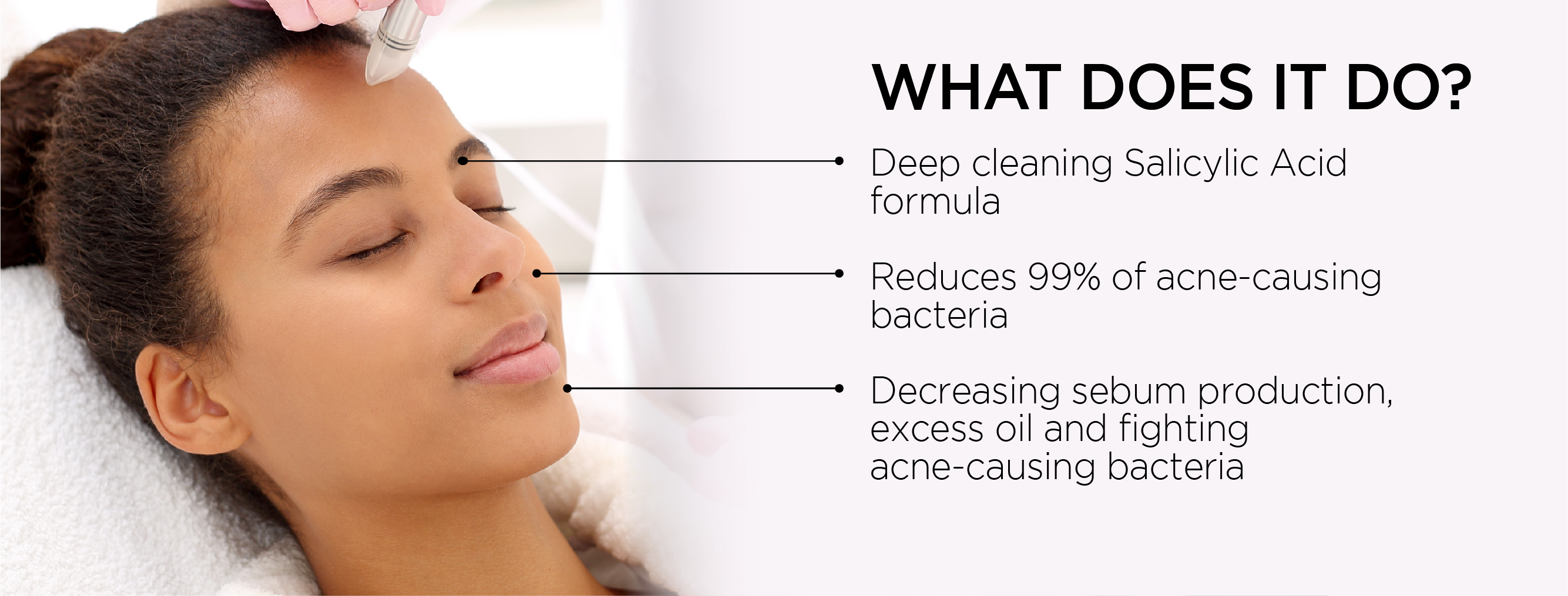 - 2% Salicylic Acid penetrates deep into pores to decrease sebum production and fight acne-causing bacteria