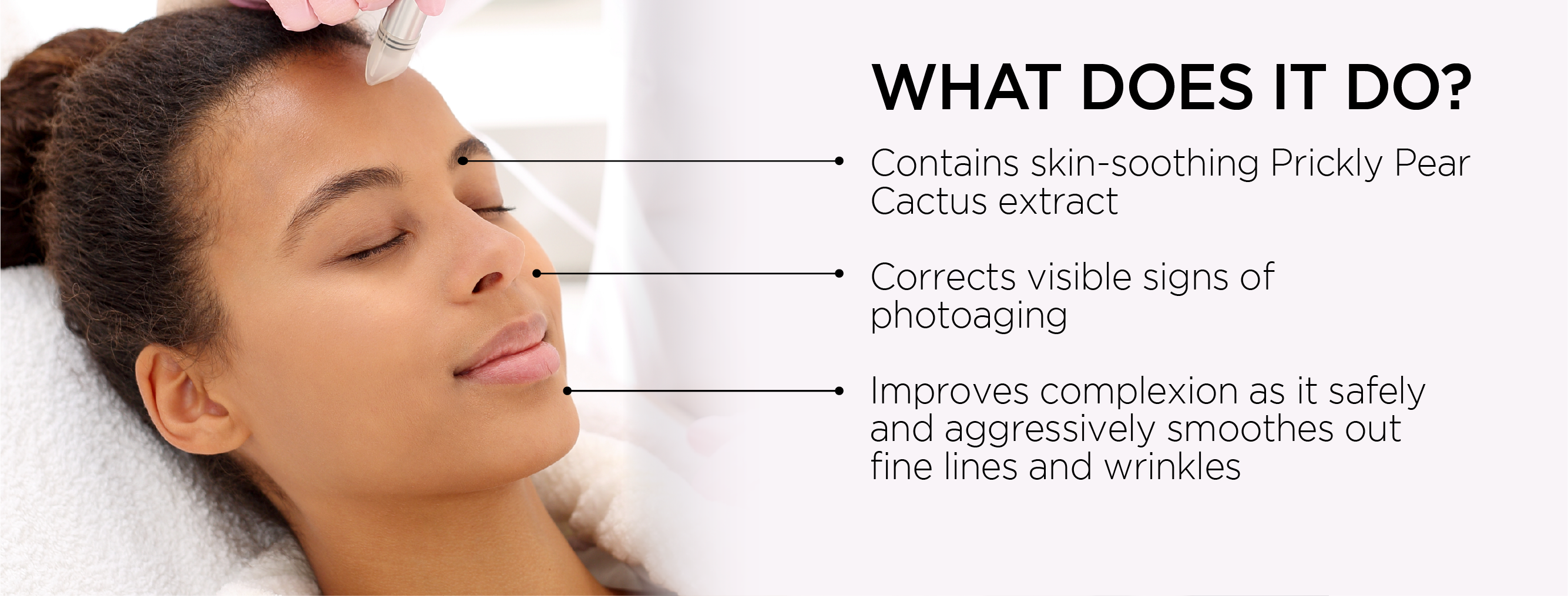- Improves complexion as it safely and aggressively smoothes out fine lines and wrinkles