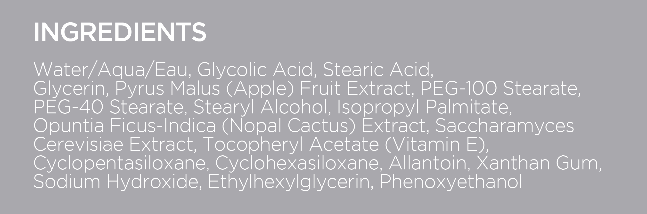 Extra strength, highly emollient Glycolic Acid Cream targets and corrects visible signs of photoaging, including a reduction of line lines and wrinkles. Infused with Prickly Pear Cactus extract, this product also provides skin-soothing properties to aid in the reduction of irritation.