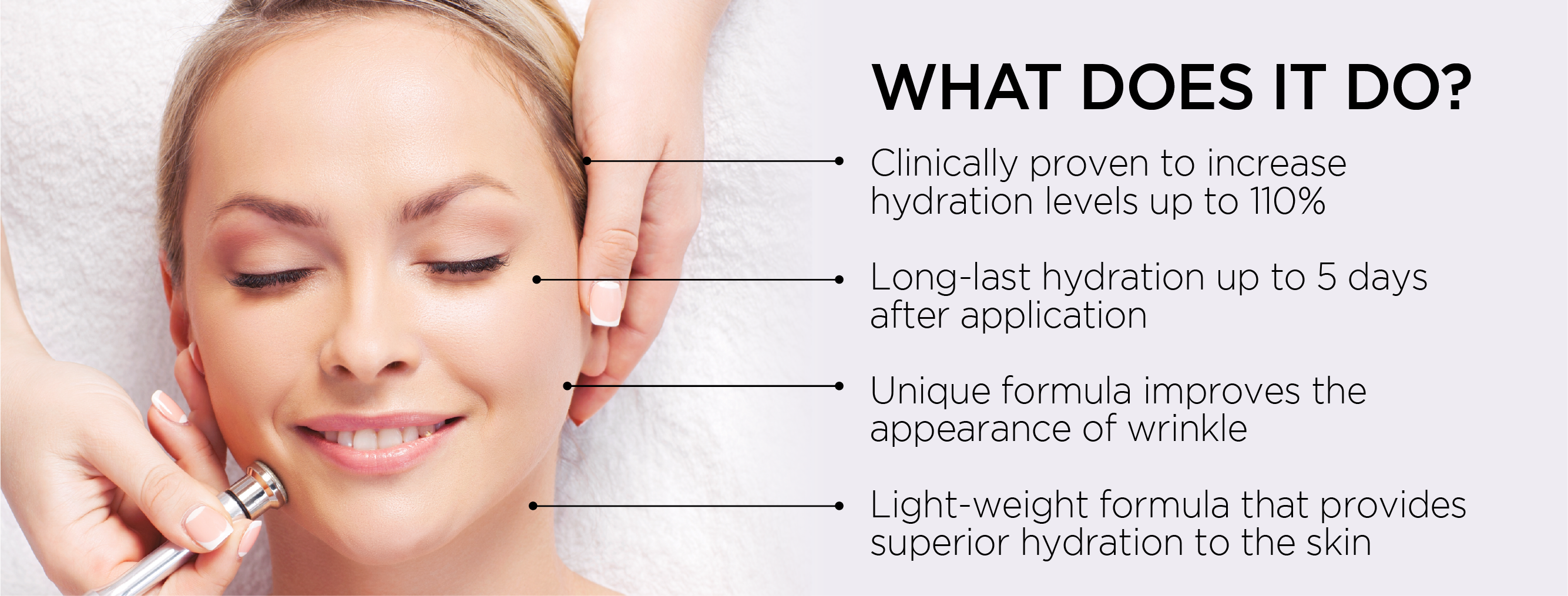 - Provides superior hydrating properties immediately upon application to improve the skinβs barrier function by reducing evaporation of water from the surface layer