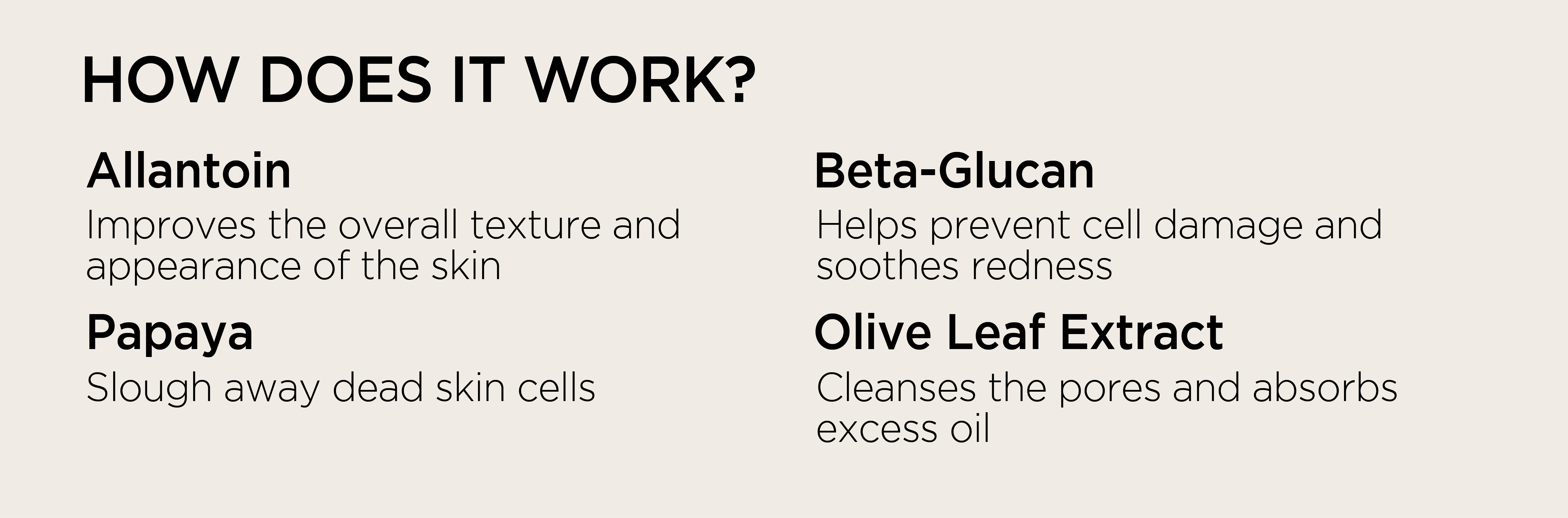 - Contains Salicylic Acid 2% and Papaya Enzymes to slough away dead skin cells and reduce excess oil