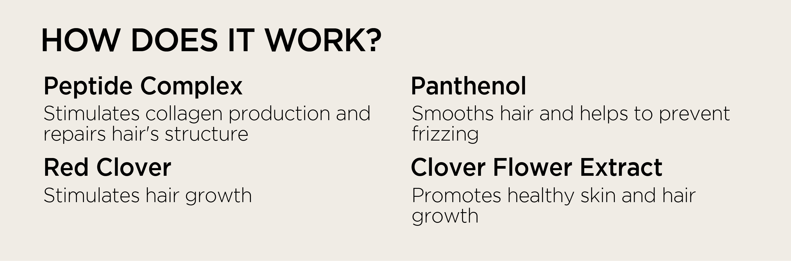 Contains brandMDยฎโs HRS-10, a biomimetic peptide combined with red clover extract rich in Biochanin A. This advanced formula supports the scalpโs natural microcirculation to create healthy conditions for new hair growth.
