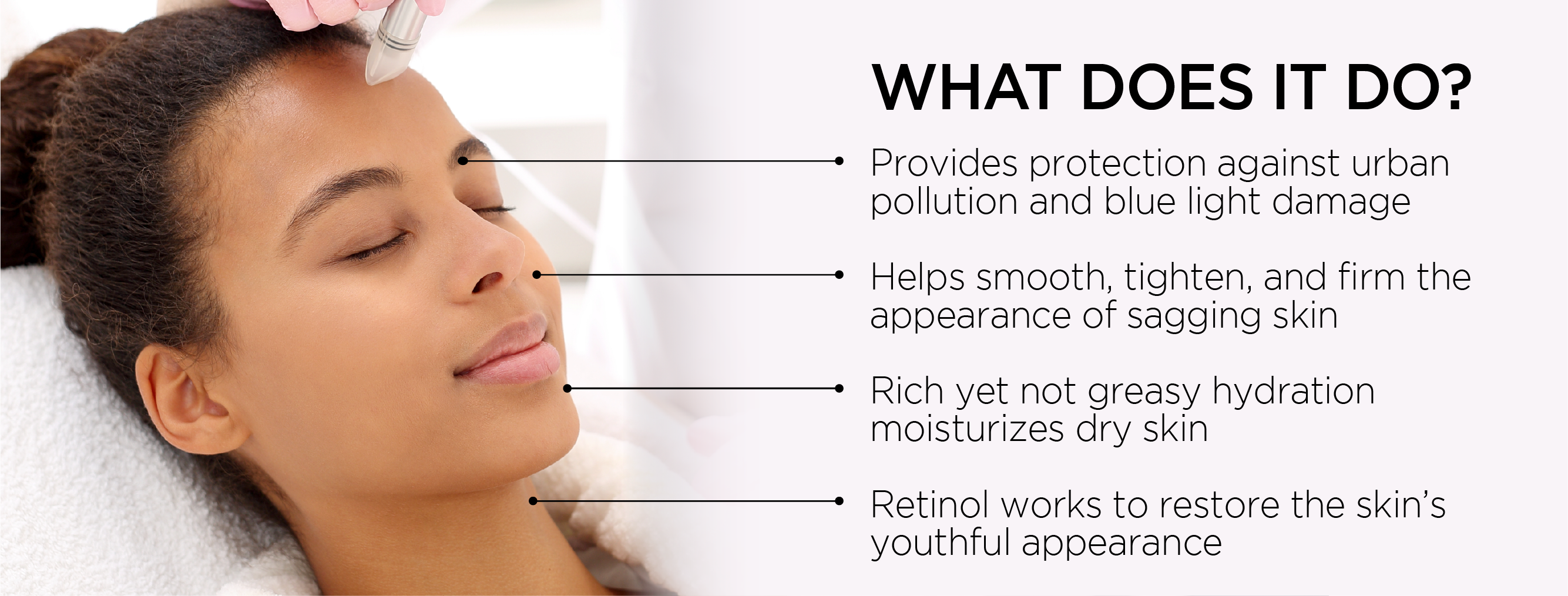 - Helps smooth, tighten, and firm the appearance of sagging skin