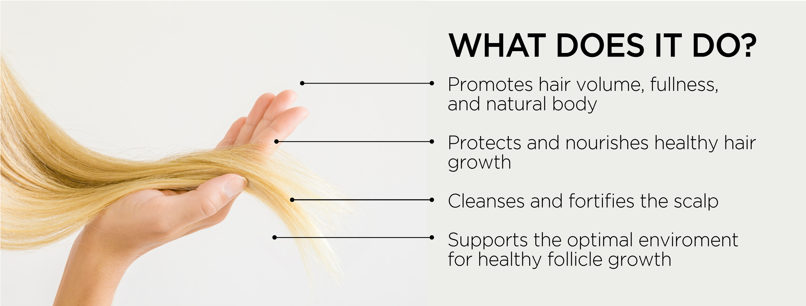 fullness to thin, lifeless hair by expanding the shaft of individual hair follicles, leaving the hair with healthy body, volume, and shine. Gentle enough for daily use.